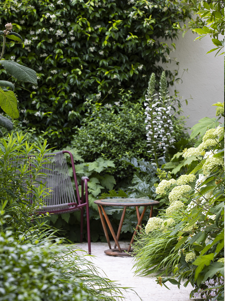 In the heart of Madrid, this compact garden is designed as a sheltered, lush retreat. Despite its limited size, the careful selection of plants contrasting in texture and flowering at different times of the year creates a sense of depth and vitality.