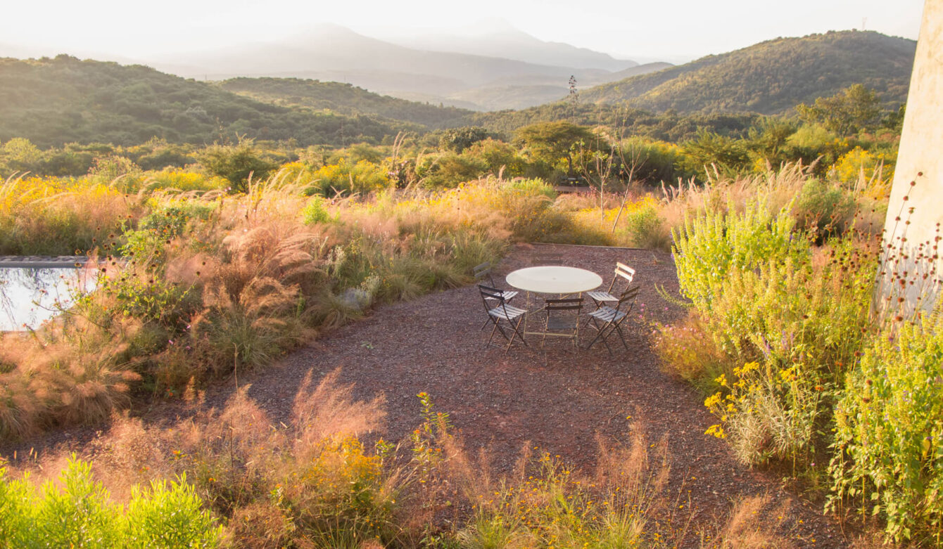 This project was particularly significant for the studio, as it was one of our first international commissions. The local climate features rainy summers and very dry winters, making the native vegetation especially interesting, with cacti coexisting alongside more lush plants. The garden was designed with local species, but due to the lack of nurseries for these plants, we established our own nursery from seeds and cuttings. The result is a pioneering project in the region, seamlessly integrated into the landscape