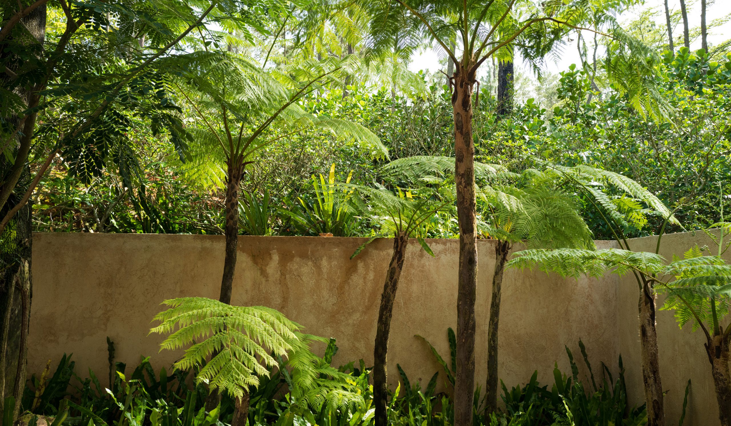 The project is situated on steep slopes, which are terraced and shaped to fit the terrain. Hundreds of native trees were planted to restore the landscape, provide shade, and attract birds. Large groups of ferns of various species define the spaces, while flowering shrubs attract hummingbirds and other fruiting shrubs promote biodiversity in the garden. Collaboration with Isabel López Quesada.